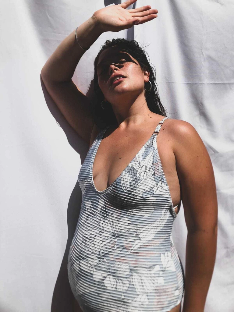 Enteriza de tricot texturado y estampado ideal para ese after beach y para usarla hasta el cansancio como body (la gran razon para usar colores clasicos es que los podes combinar con todo)