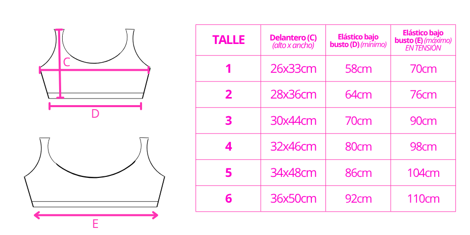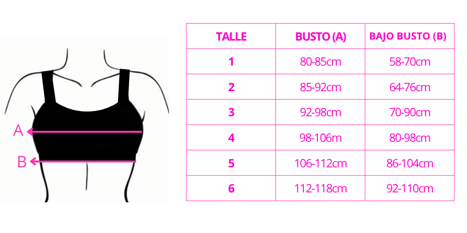 • DUDÁS ENTRE DOS TALLES?: Si dudas entre dos talles, en este caso en particular te recomendamos que tomes la decisión final basándote en el talle que consideres que va a ir mejor de bajo busto. Este modelo no tiene contorno regulable, por lo tanto es tu decisión si preferís que te ajuste más o menor el elástico.